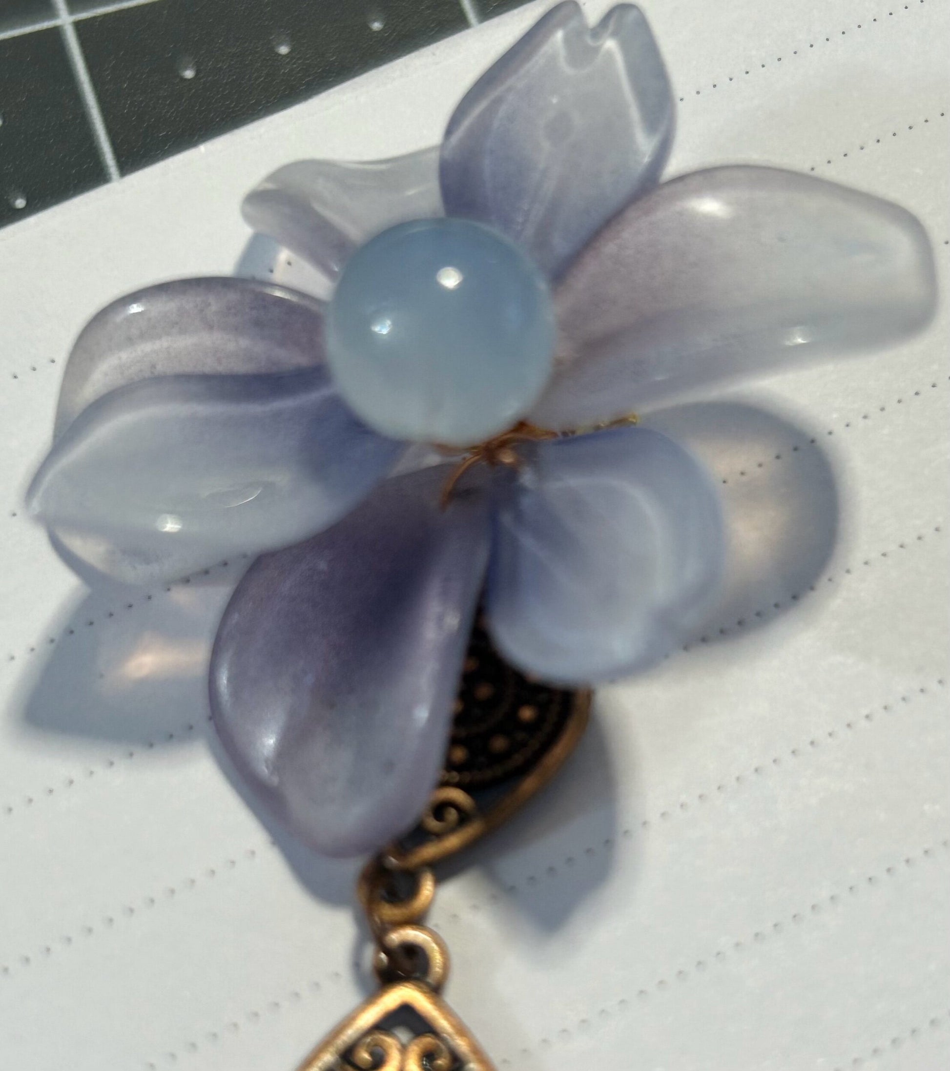 Handmade blue glass flower bookmark or junk journal closure. Can add jump rings for the junk journal closure. Eight inches long. #diy_jojo Nora #junkjournal