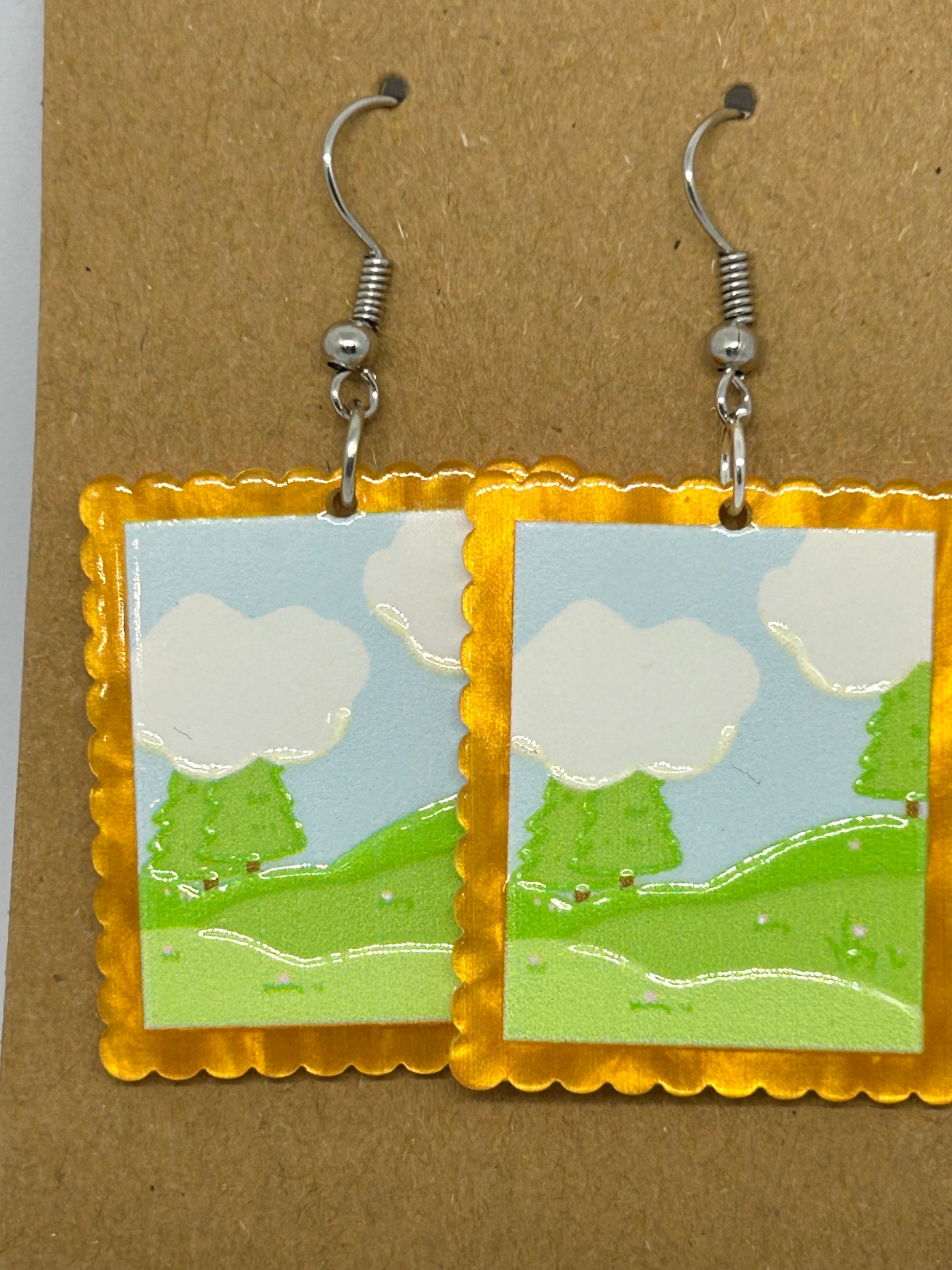 Capture nature's beauty with our park-themed picture earrings, adding whimsy to any outfit for urban outings or verdant escapes. Elevate your style with these charming accessories.