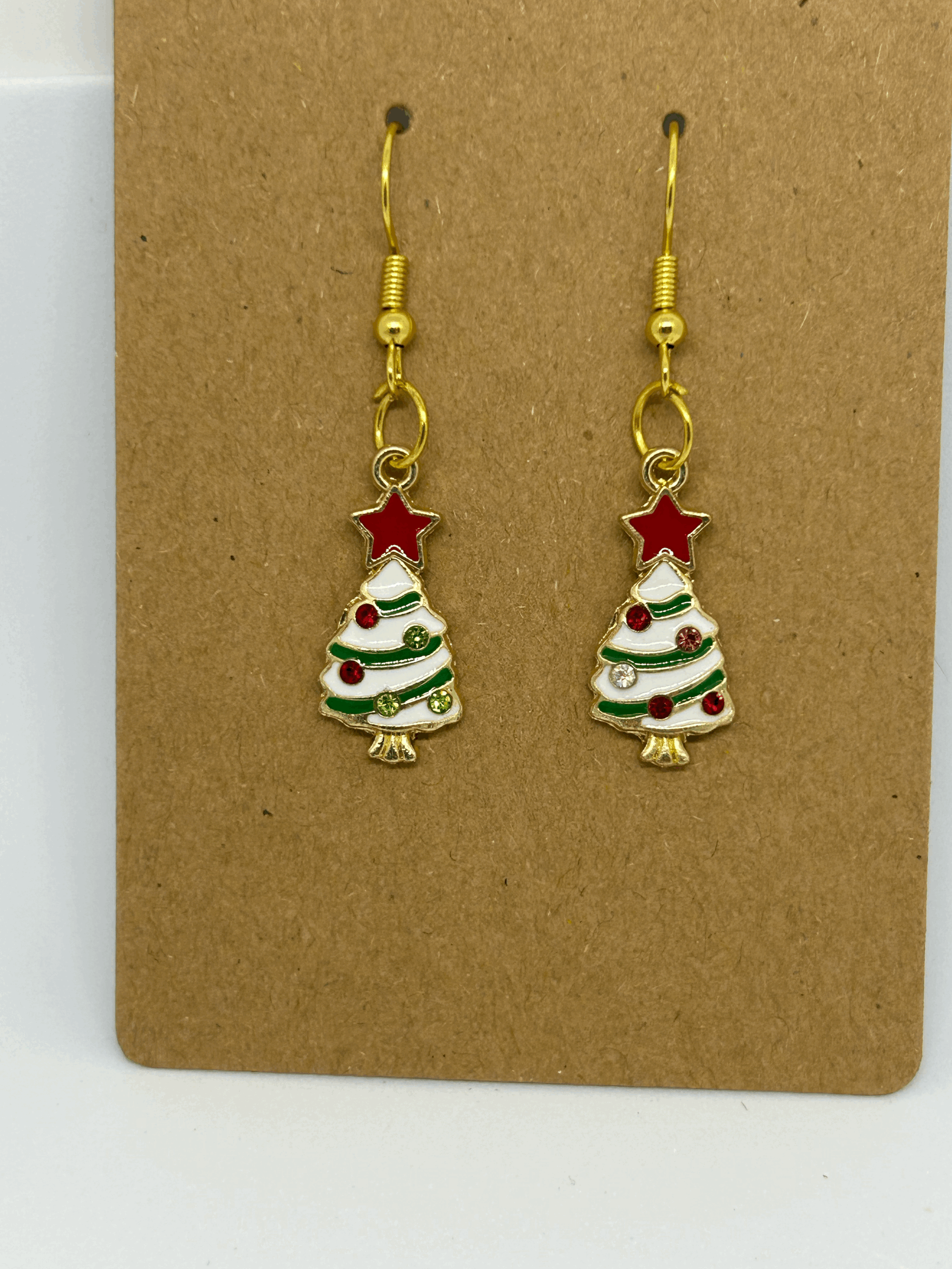 Celebrate the season with our Mini Metal White Christmas Tree Earrings on gold hooks. Perfect for a festive touch. Detailed white Christmas trees on gold hooks for a whimsical look. Ideal for parties or gifting. Embrace the magic at Fox and Sphynx Crafting.